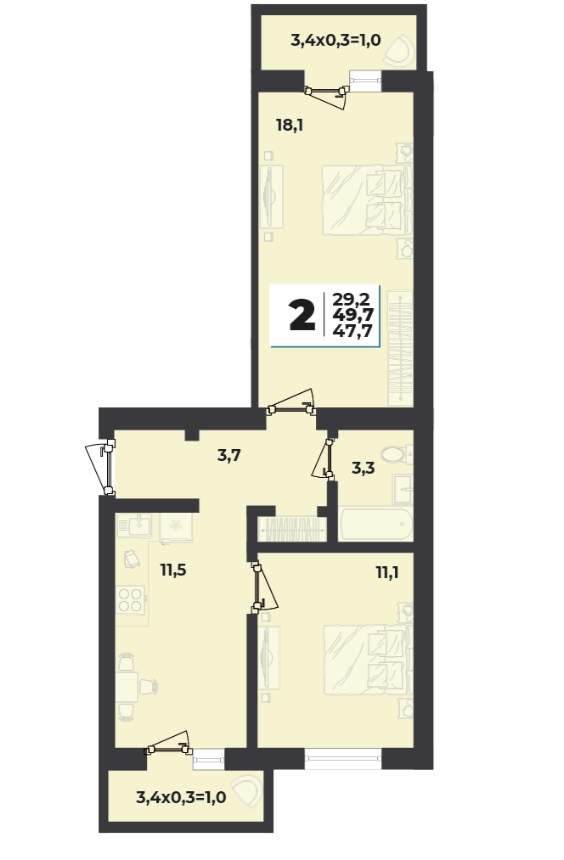 Продается 2-х комн. новостройка, 49.7 кв.м., 3/5 эт