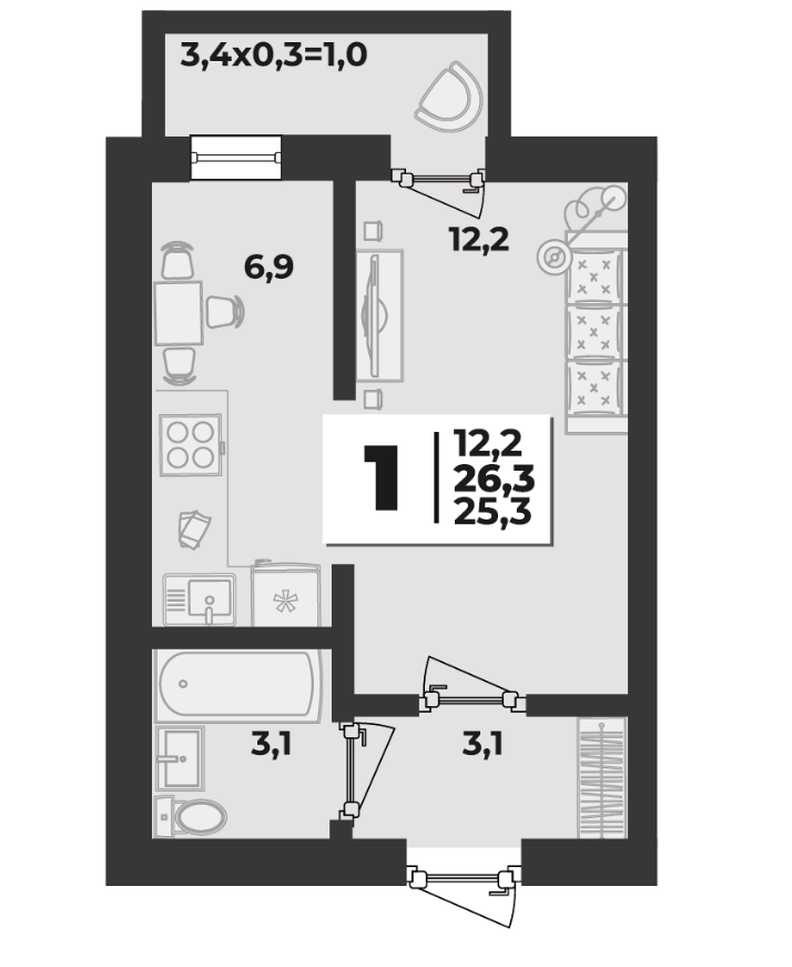 | Площадь, кв.м. | 26.3 |