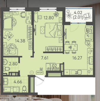 Продается 2-х комн. новостройка, 64.05 кв.м., 4/8 эт