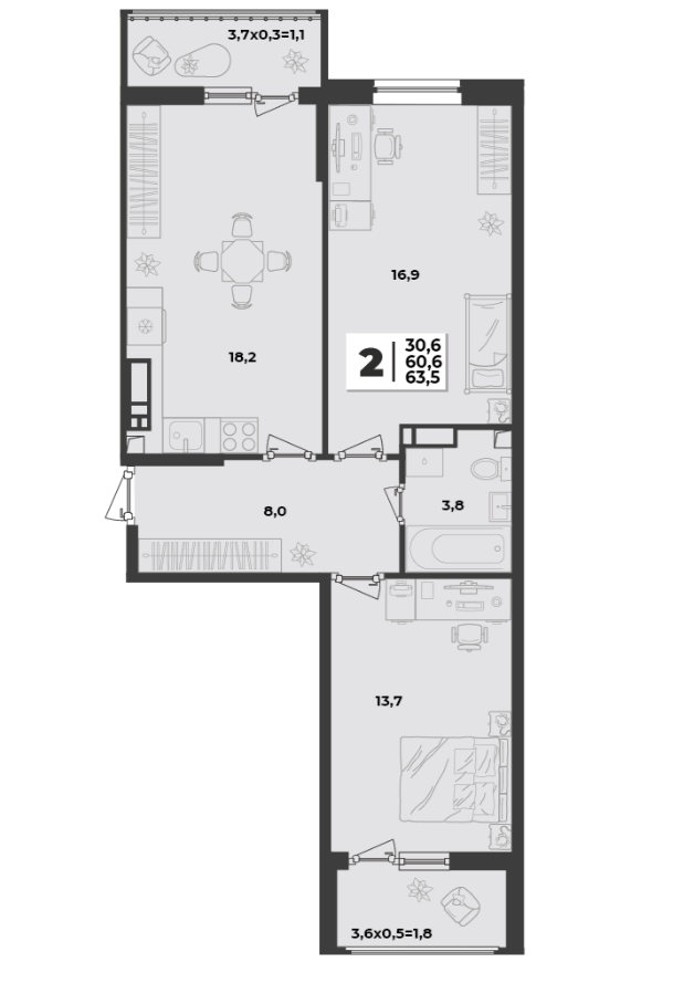 Продается 2-х комн. новостройка, 63.5 кв.м., 7/8 эт