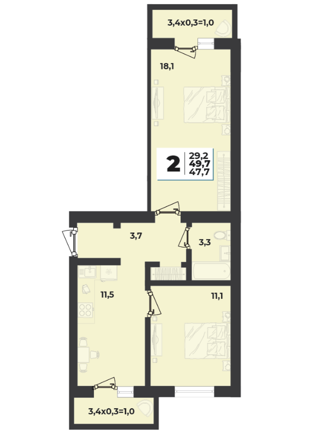 | Площадь, кв.м. | 49.7 |