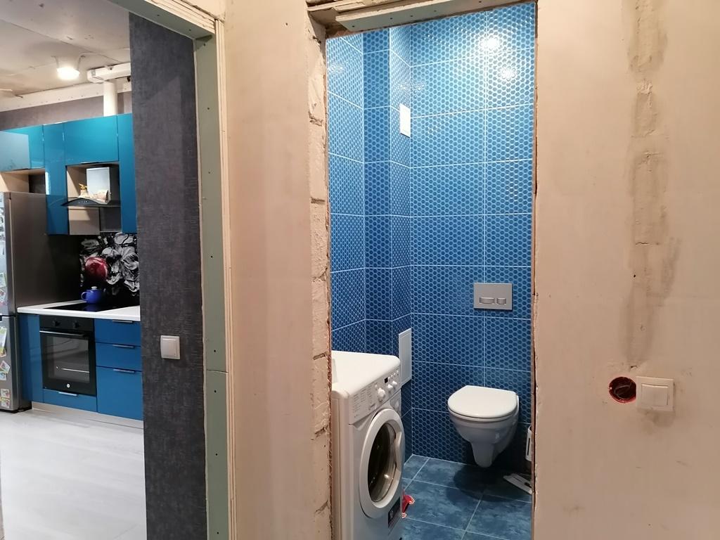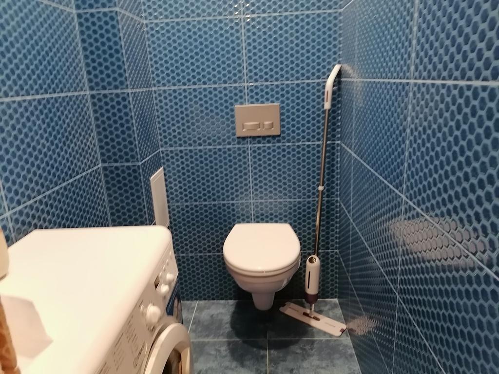 Санузел: установлена инсталяция, качественно уложена плитка.