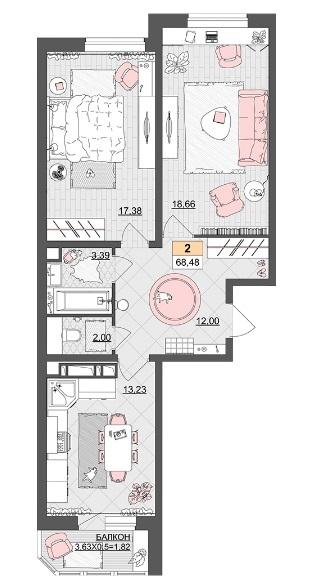Продается 2-х комн. новостройка, 68.48 кв.м., 6/19 эт
