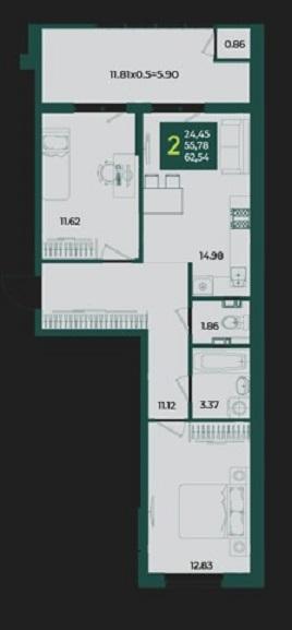Продается 2-х комн. новостройка, 62.54 кв.м., 6/18 эт