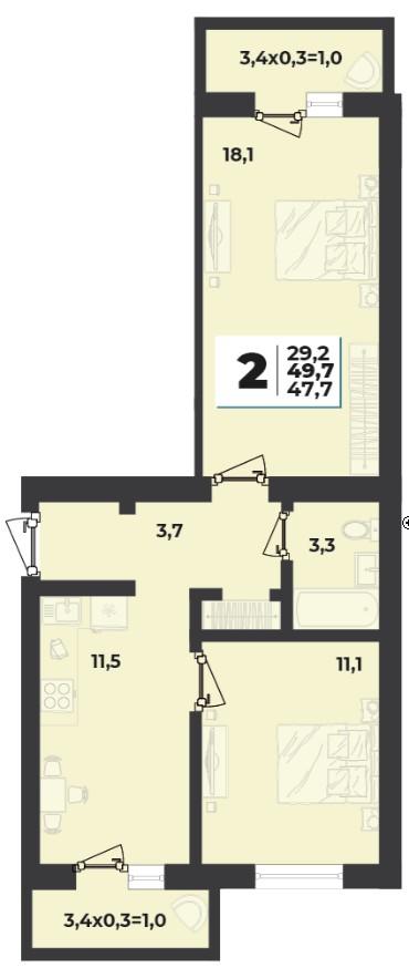 Продается 2-х комн. новостройка, 49.7 кв.м., 4/5 эт