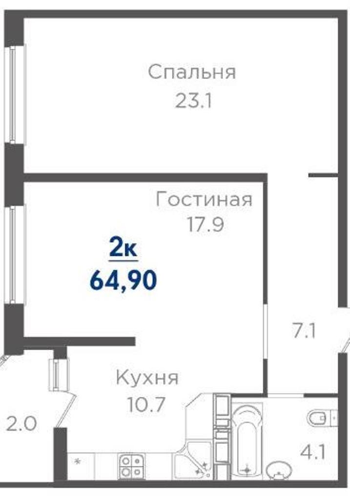 Продается 2-х комн. новостройка, 65 кв.м., 3/25 эт