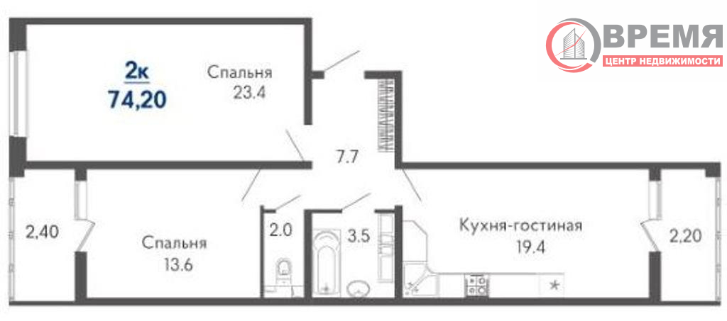 Продается 2-х комн. новостройка, 74 кв.м., 13/25 эт