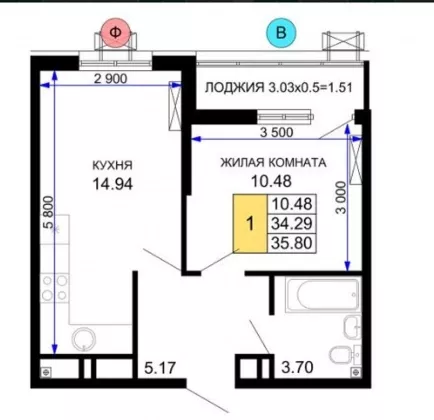 Продается однокомнатная новостройка, 35.8 кв.м., 15/24 эт