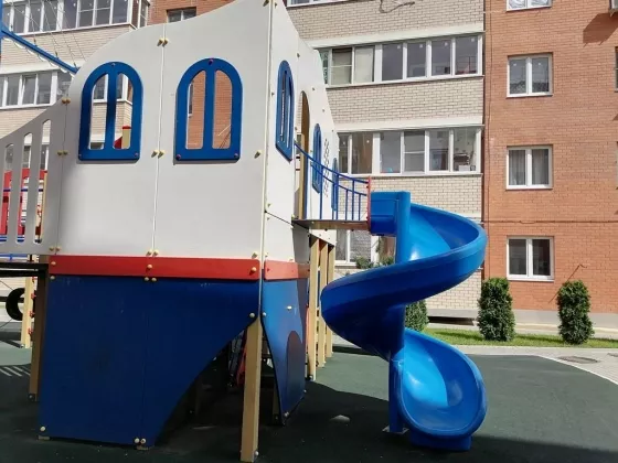 Красивая придомовая территория, с зеленными газонами, с игровыми площадками. Очень близко Юбилейный микрорайон города Краснодара, там институты и техникумы, очень удобно для студентов или молодой семьи.