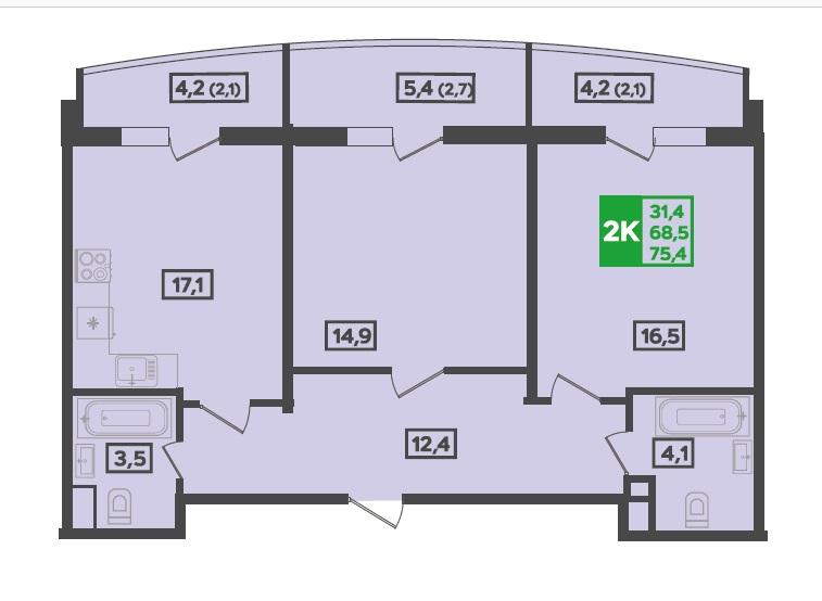Продается 3-х комн. новостройка, 75 кв.м., 8/24 эт