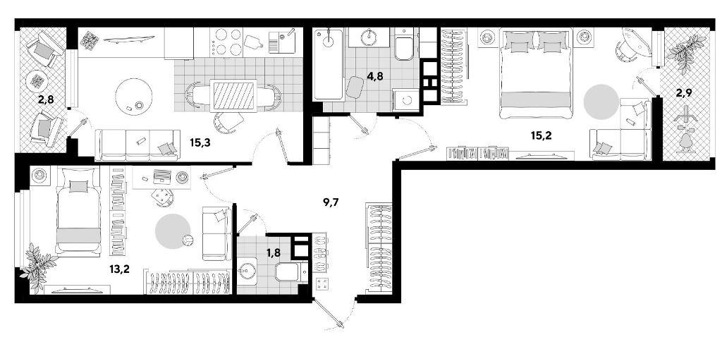Шикарная планировка квартира в предчистовой отделке, квартира с большой кухней на две стороны, есть балкон и лоджия, раздельный санузел, много места в прихожей есть куда поставить шкафы.