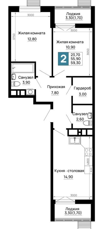 | Площадь, кв.м. | 59.3 |