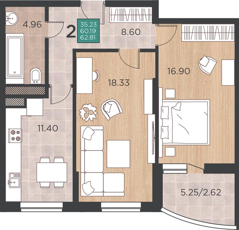 Продается 2-х комн. новостройка, 62 кв.м., 8/17 эт