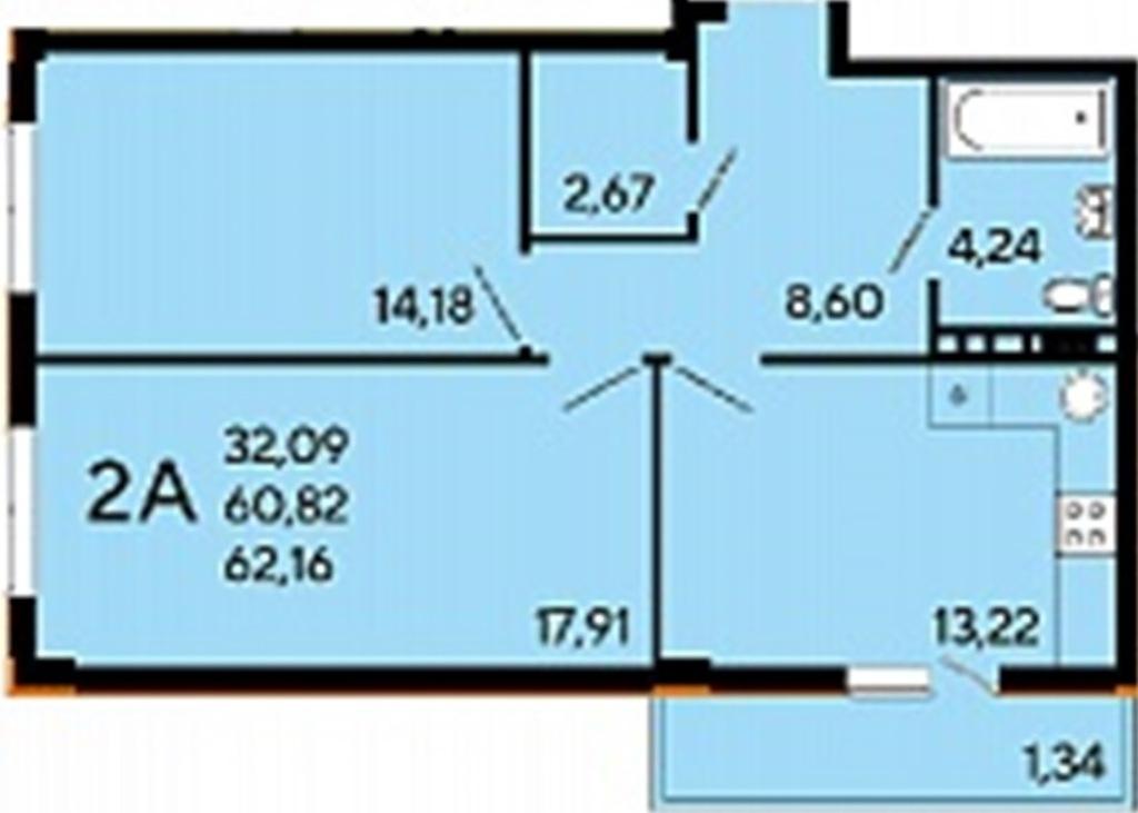 Продается 2-х комн. новостройка, 62 кв.м., 7/8 эт