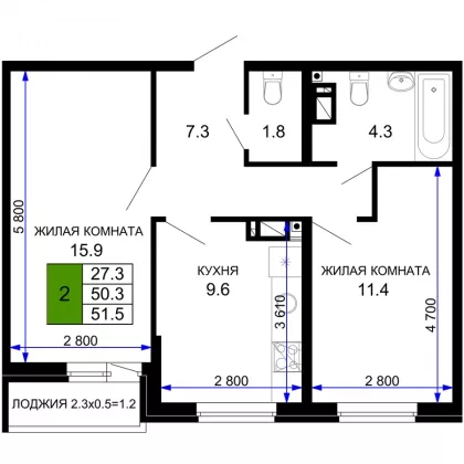 Продается 2-х комн. новостройка, 51.5 кв.м., 10/16 эт