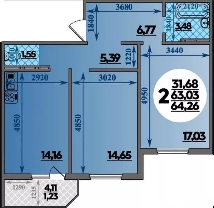 Продается 2-х комн. новостройка, 64.26 кв.м., 5/16 эт