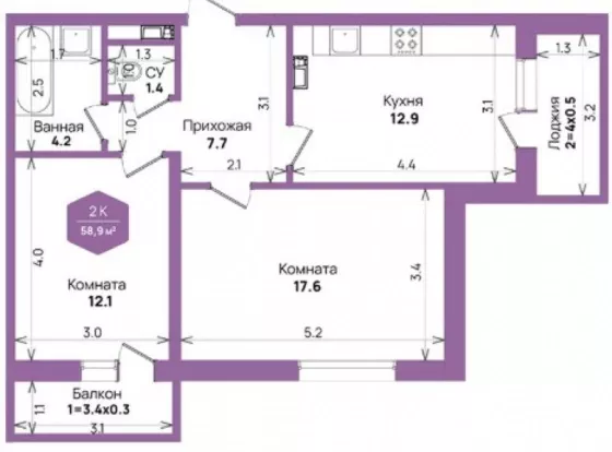 Продается 2-х комн. новостройка, 58.9 кв.м., 10/21 эт