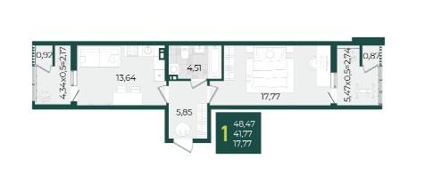 Продается однокомнатная новостройка, 48.47 кв.м., 16/21 эт