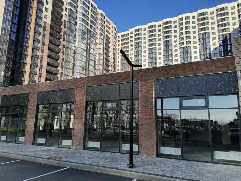 На первых этажах дома витражное остекление там коммерческие помещения разной направленности: магазины, студии фитнеса, салон красоты, аптеки, кафе много другое.
