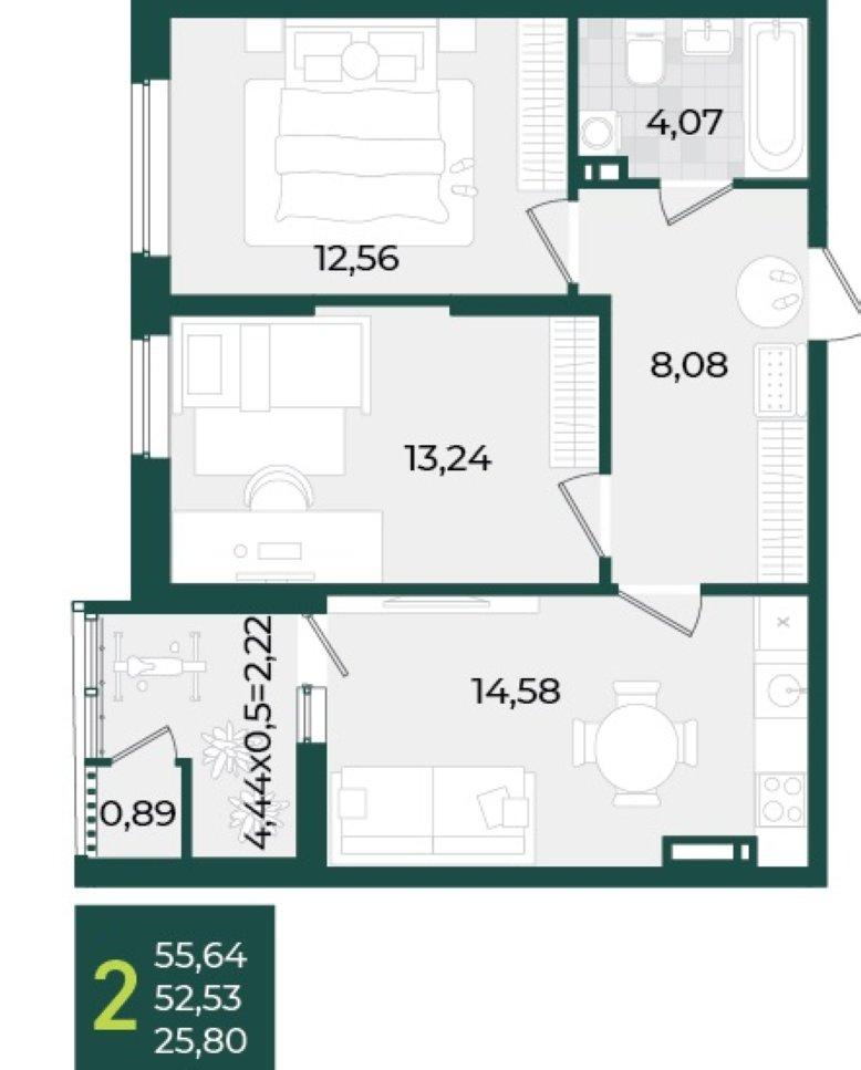 Продается 2-х комн. новостройка, 55.64 кв.м., 13/21 эт