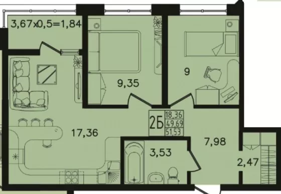 Продается 2-х комн. новостройка, 51.53 кв.м., 7/16 эт