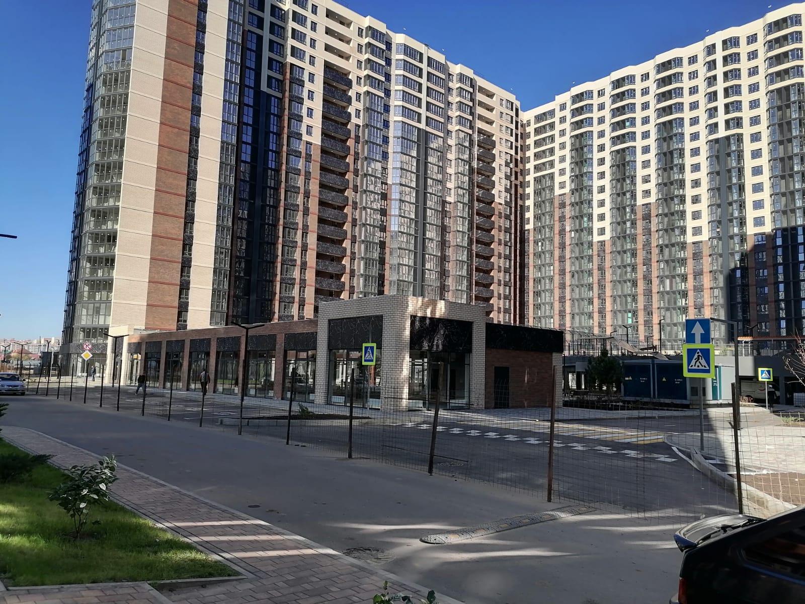 На первых этажах дома витражное остекление там коммерческие помещения разной направленности: магазины, студии фитнеса, салон красоты, аптеки, кафе много другое.