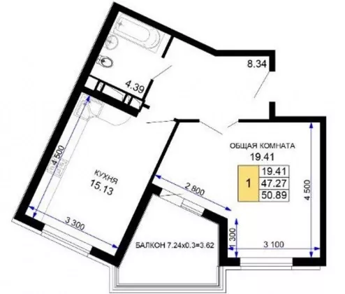 | Площадь, кв.м. | 50.89 |