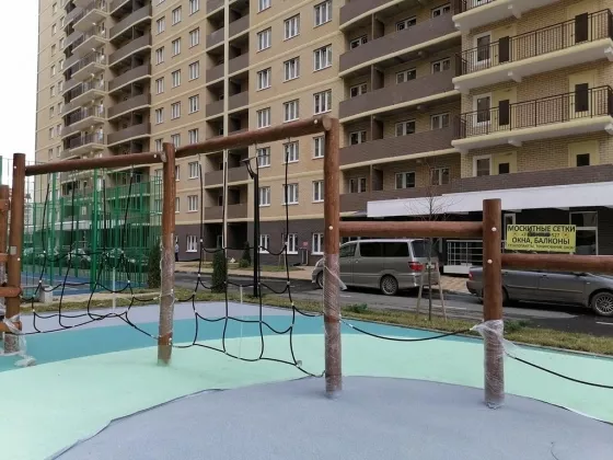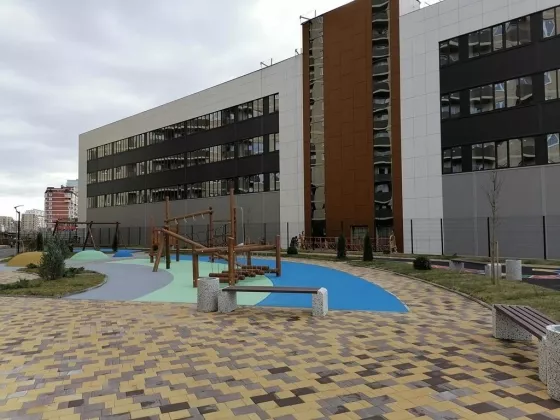 Во дворе детские и спортивные площадки, многоуровневая парковка, детский сад в соседнем дворе, зоны отдыха и своя управляющая компания.
