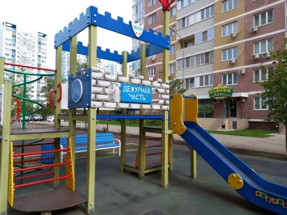 На первых этажах коммерция, во дворе детские и спортивные площадки.
