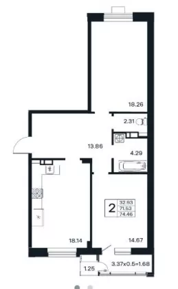 Продается 2-х комн. новостройка, 74.46 кв.м., 5/12 эт