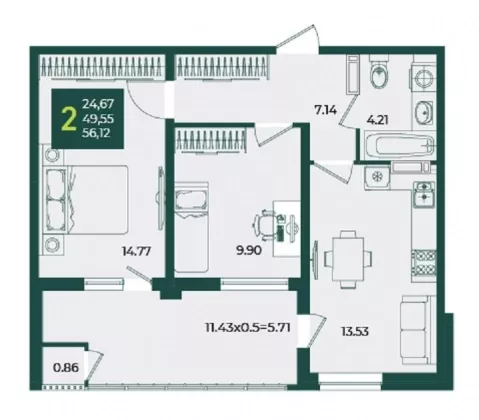Продается 2-х комн. новостройка, 56.12 кв.м., 10/18 эт