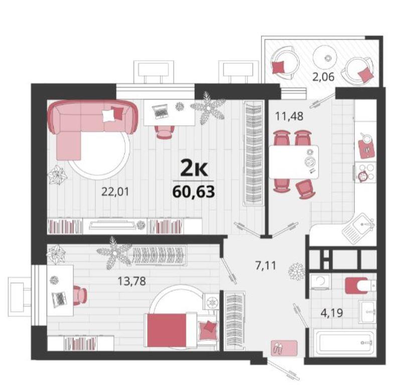 | Площадь, кв.м. | 60.63 |