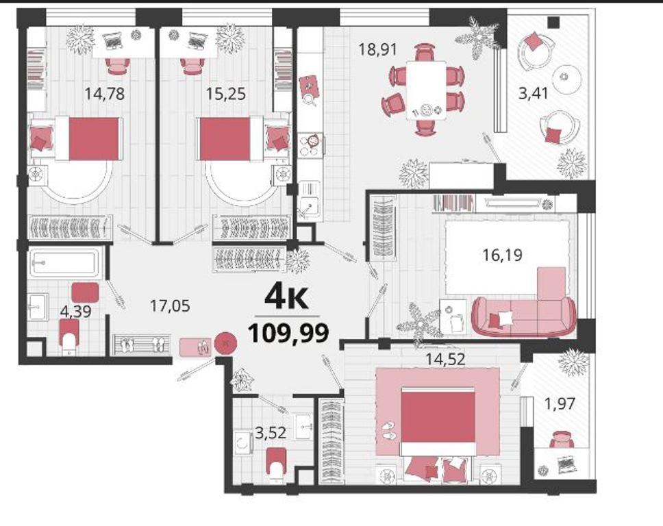 Продается 2-х комн. новостройка, 109.99 кв.м., 24/24 эт