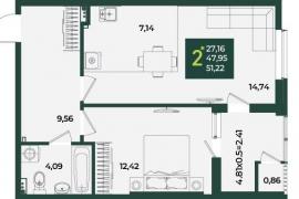 Продается 2-х комн. новостройка, 51.22 кв.м., 2/18 эт