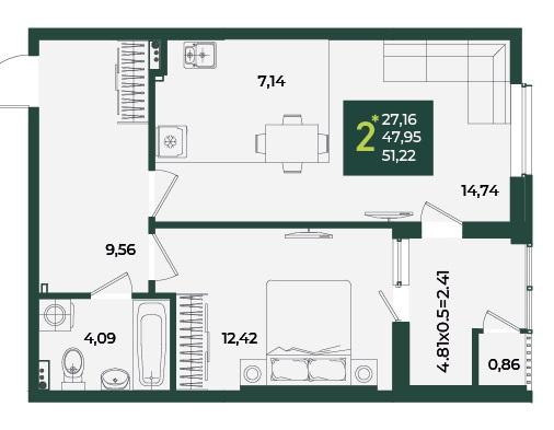 Продается 2-х комн. новостройка, 51.22 кв.м., 3/18 эт