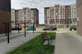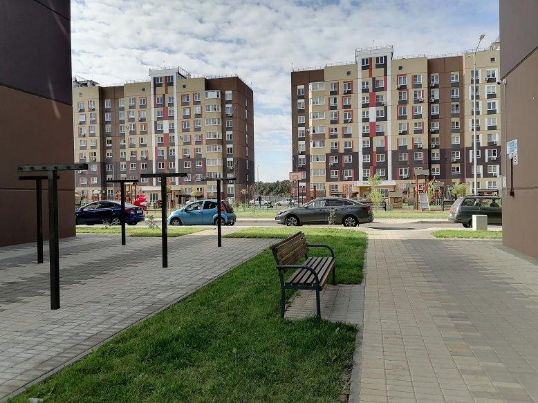 Большое расстояние между домами, много места для парковки автомобилей. Двор с красочными детскими и спортивными площадками , скамейками для отдыха и зелеными кустарниками и деревьями. Здесь хочется жить приезжайте и убедитесь сами.