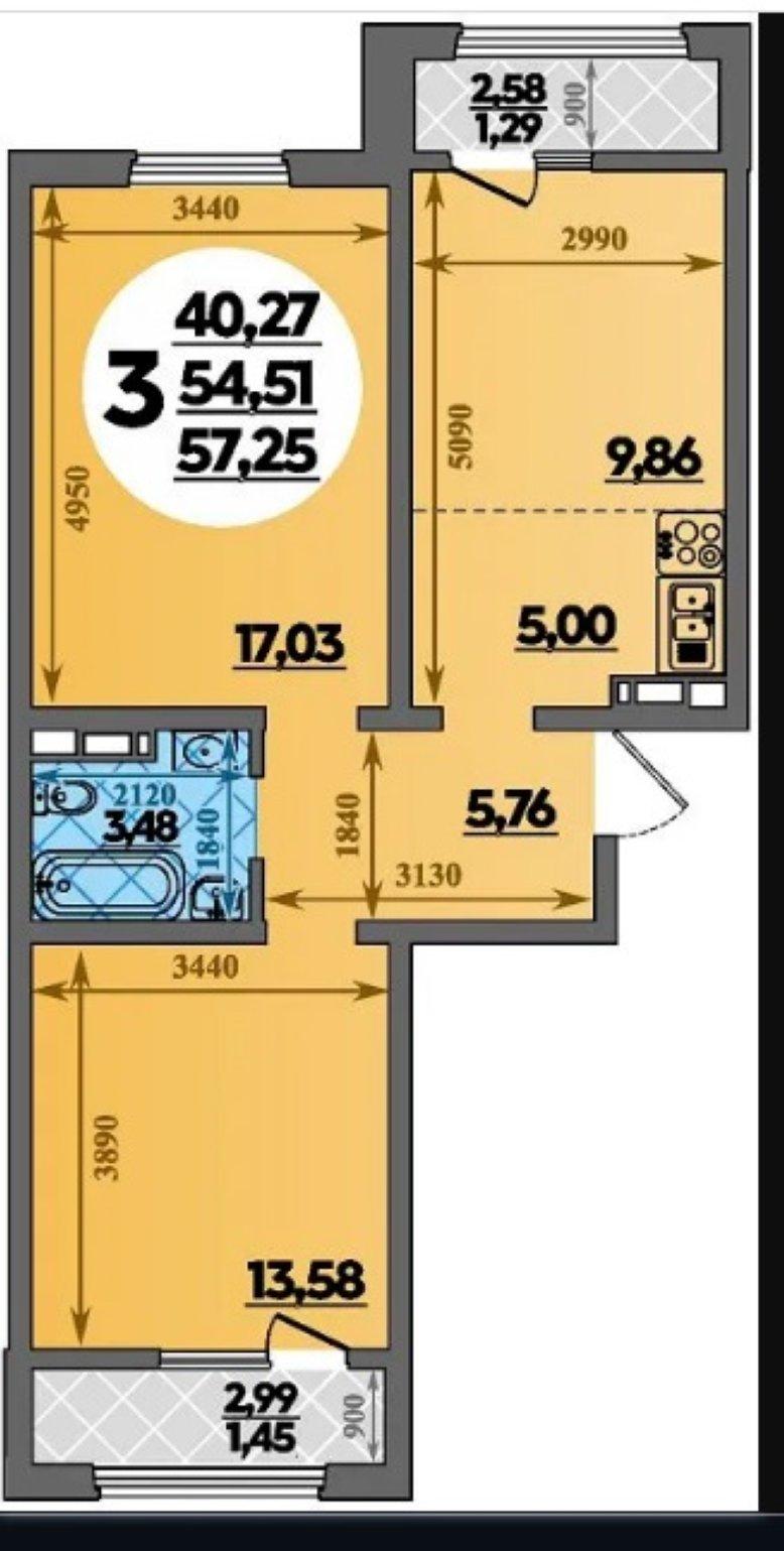 Продается 3-х комн. новостройка, 57.25 кв.м., 6/8 эт