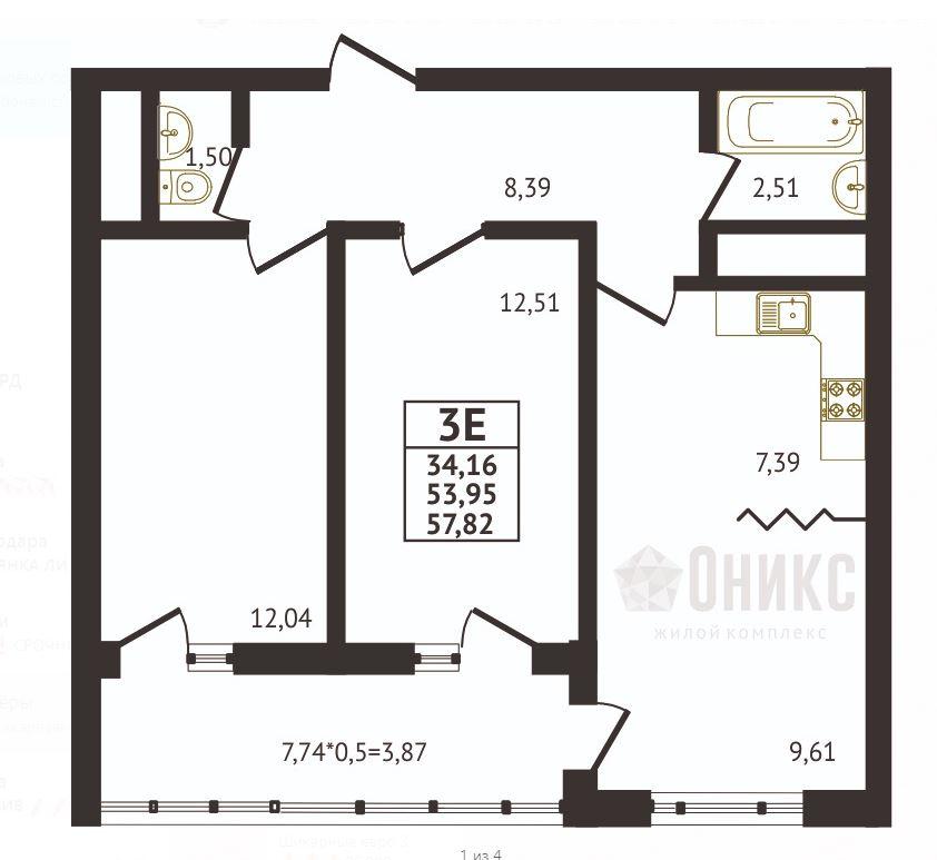 Продается 3-х комн. новостройка, 58 кв.м., 12/21 эт
