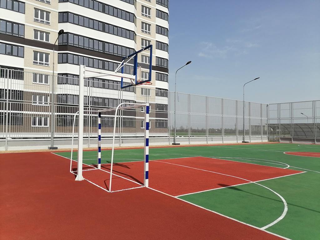Школа, детский сад и большой торговый центр. Остановка общественного транспорта рядом с домом.
