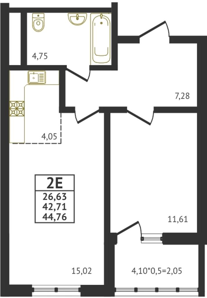 Продается 2-х комн. новостройка, 44.76 кв.м., 7/17 эт