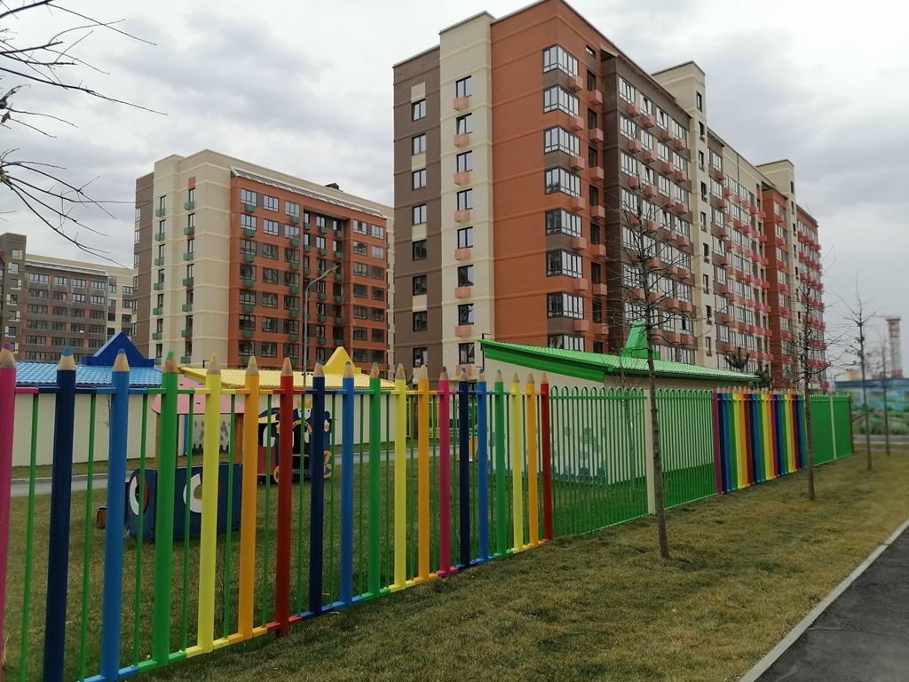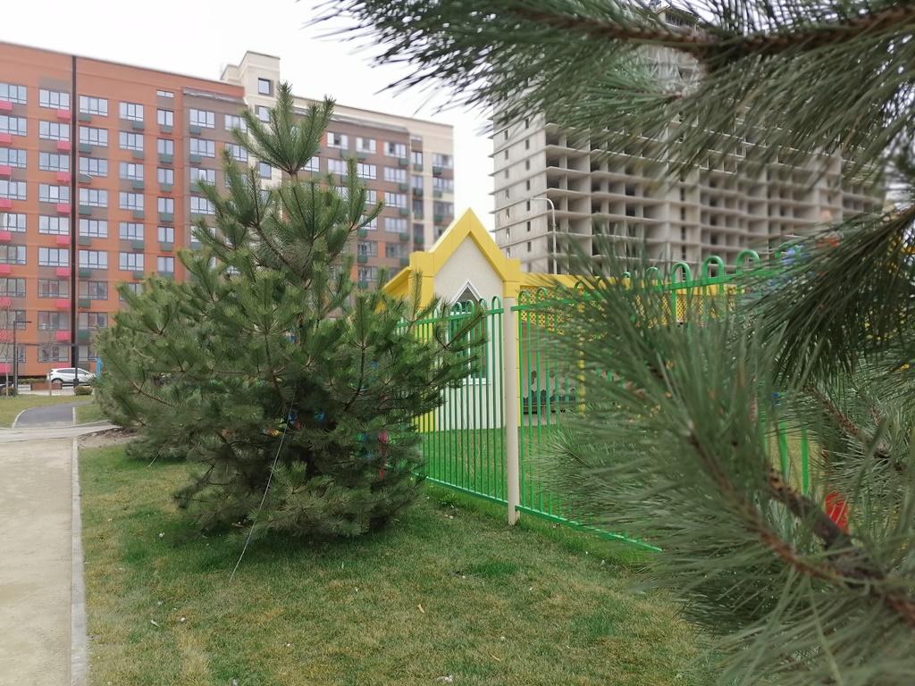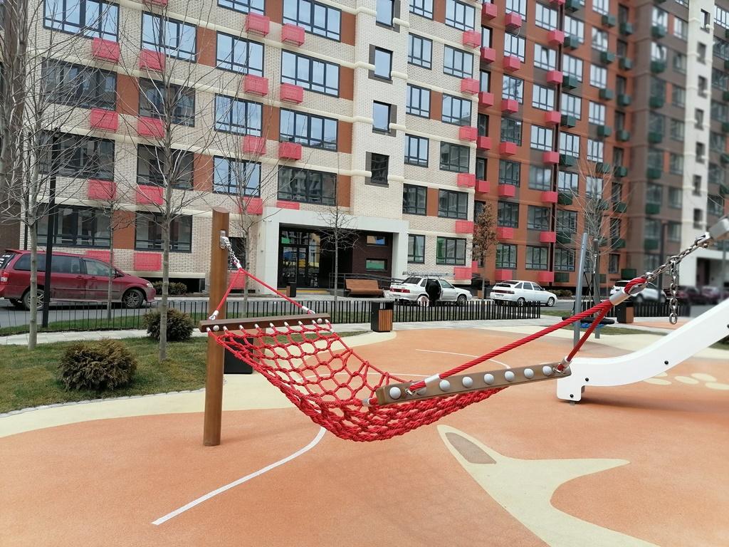 На территории комплекса три детских сада, школа, поликлиника, фонтан и парк 6 га. Тематические детские и технологические воркаут площадки, благоустроенная территория, много зелени.