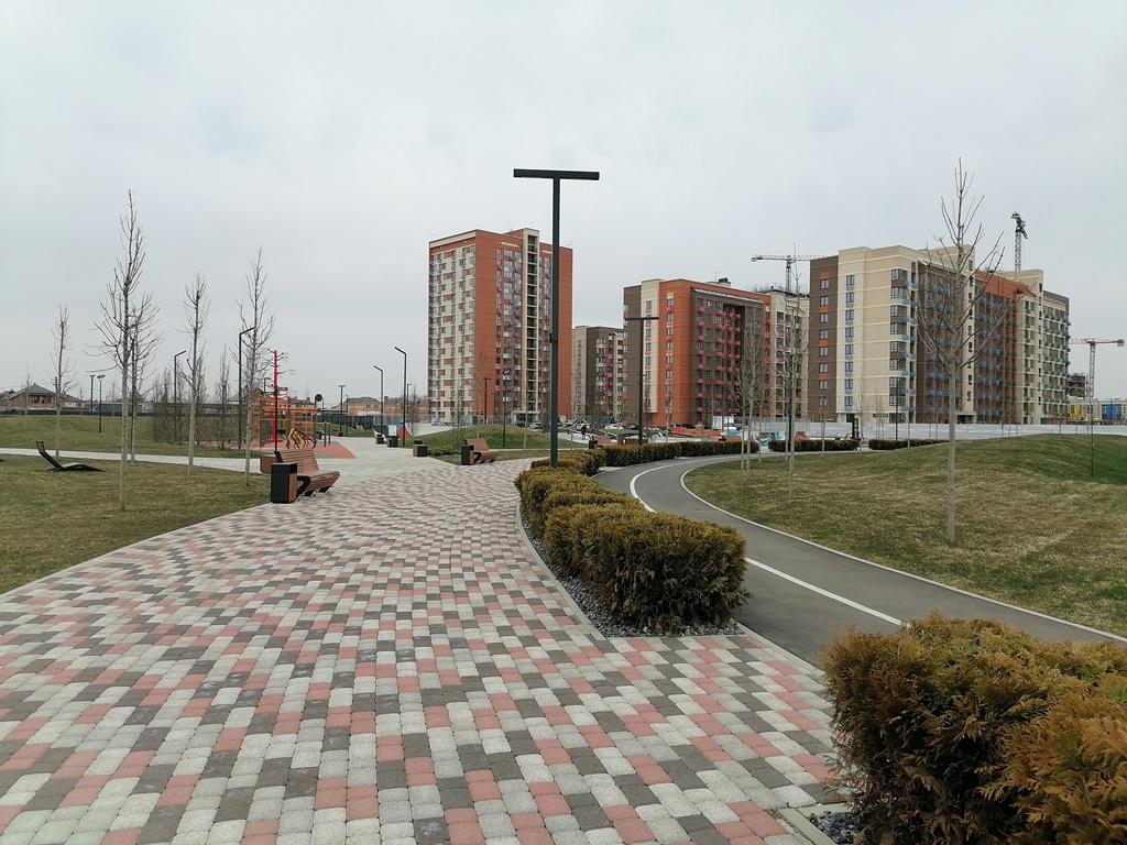 На территории комплекса три детских сада, школа, поликлиника, фонтан , парк 6 га, Храм, проектируется физкультурно-оздоровительный комплекс с открытым бассейном для всех жителей. Очень всё красиво и чисто. Здесь хочется жить!!!