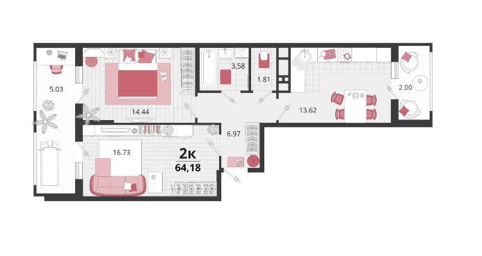 Продается 2-х комн. новостройка, 64.18 кв.м., 6/18 эт