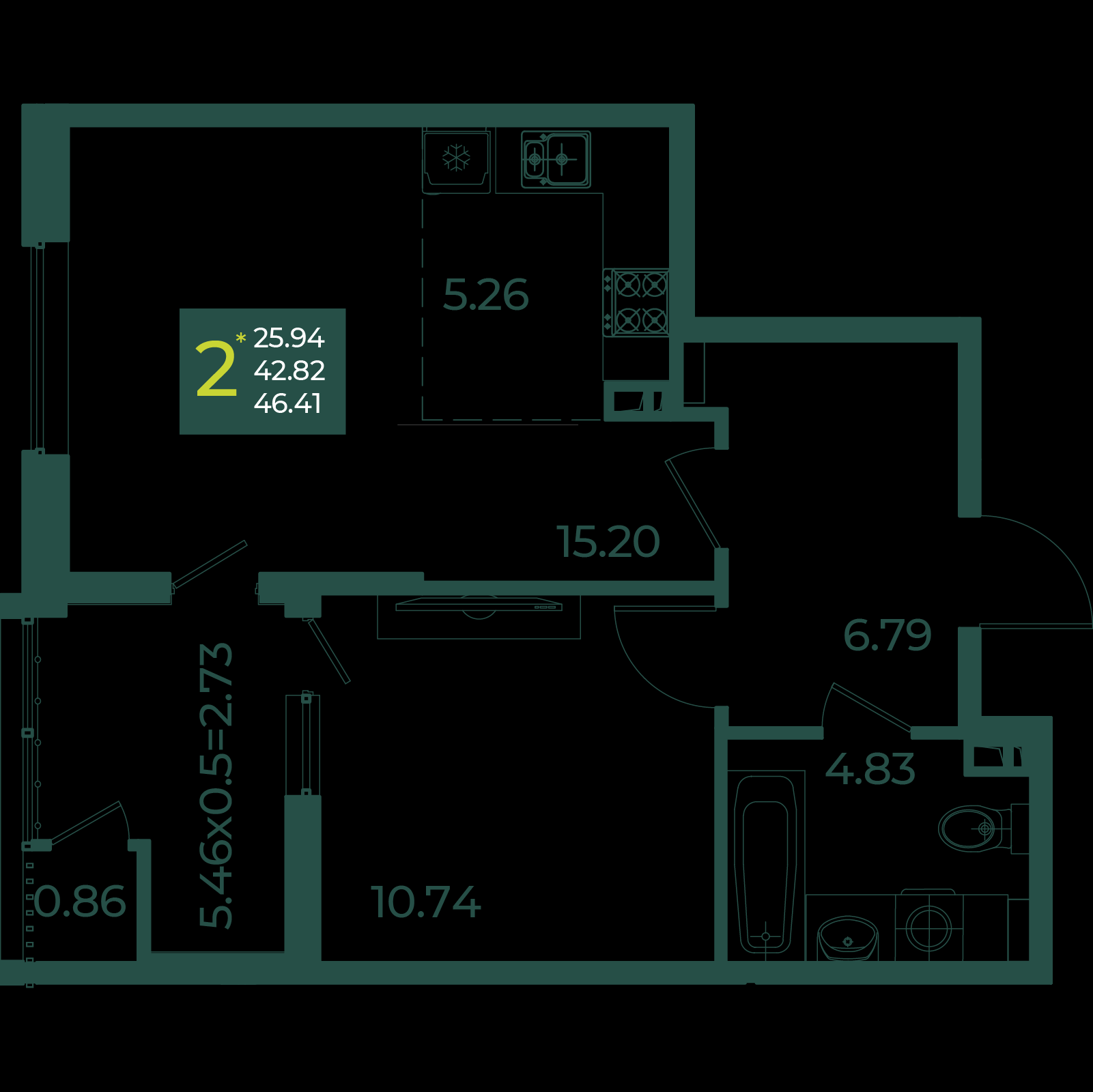 Площадь, кв.м.46.4