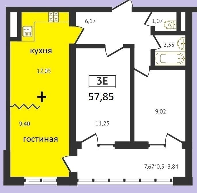 Продается 3-х комн. новостройка, 57.85 кв.м., 12/17 эт