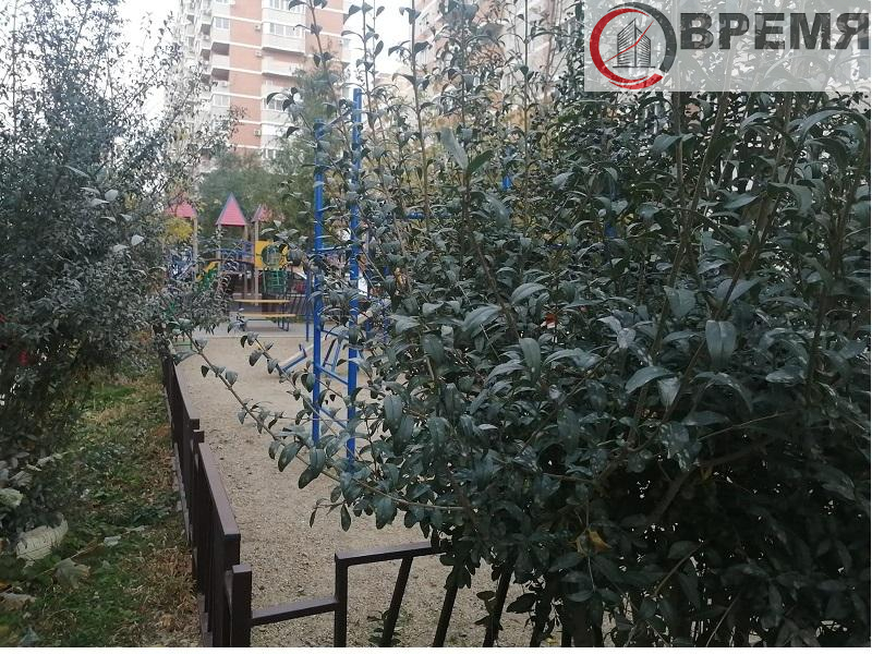 Во дворе: въезд на территорию комплекса через шлагбаум, во дворе много  зелени и молодых деревьев, детские и спортивные площадки, скамейки  и беседки  для отдыха.