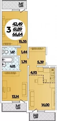 Продается 3-х комн. новостройка, 67 кв.м., 11/16 эт
