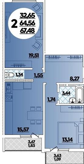 Продается 2-х комн. новостройка, 67 кв.м., 15/16 эт