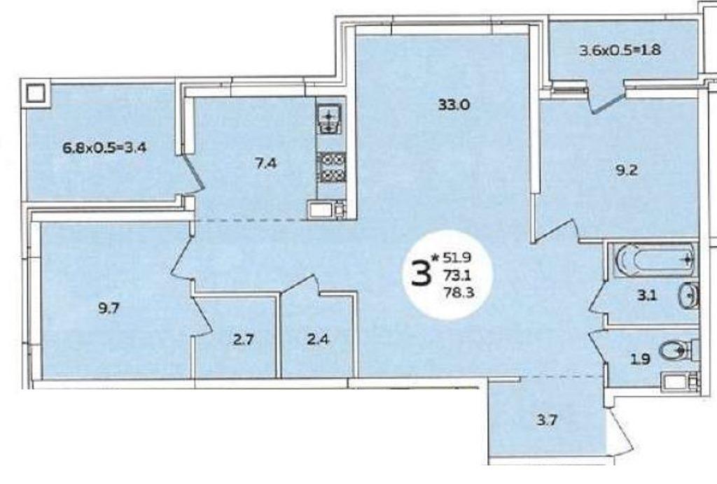 Продается 3-х комн. новостройка, 78.3 кв.м., 12/24 эт