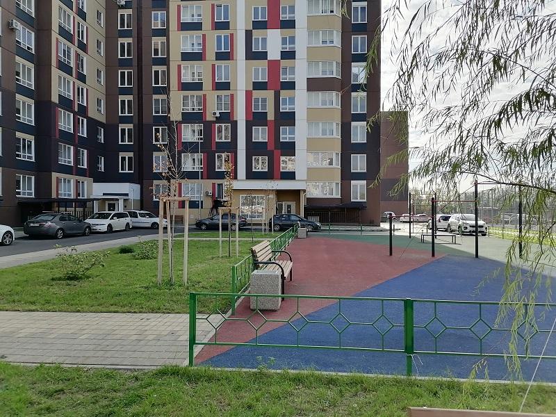 Большое расстояние между домами, много места для парковки автомобилей. Зелёный двор с красочными детскими и спортивными площадками, скамейками для отдыха и красивыми кустарниками , молодыми деревьями.